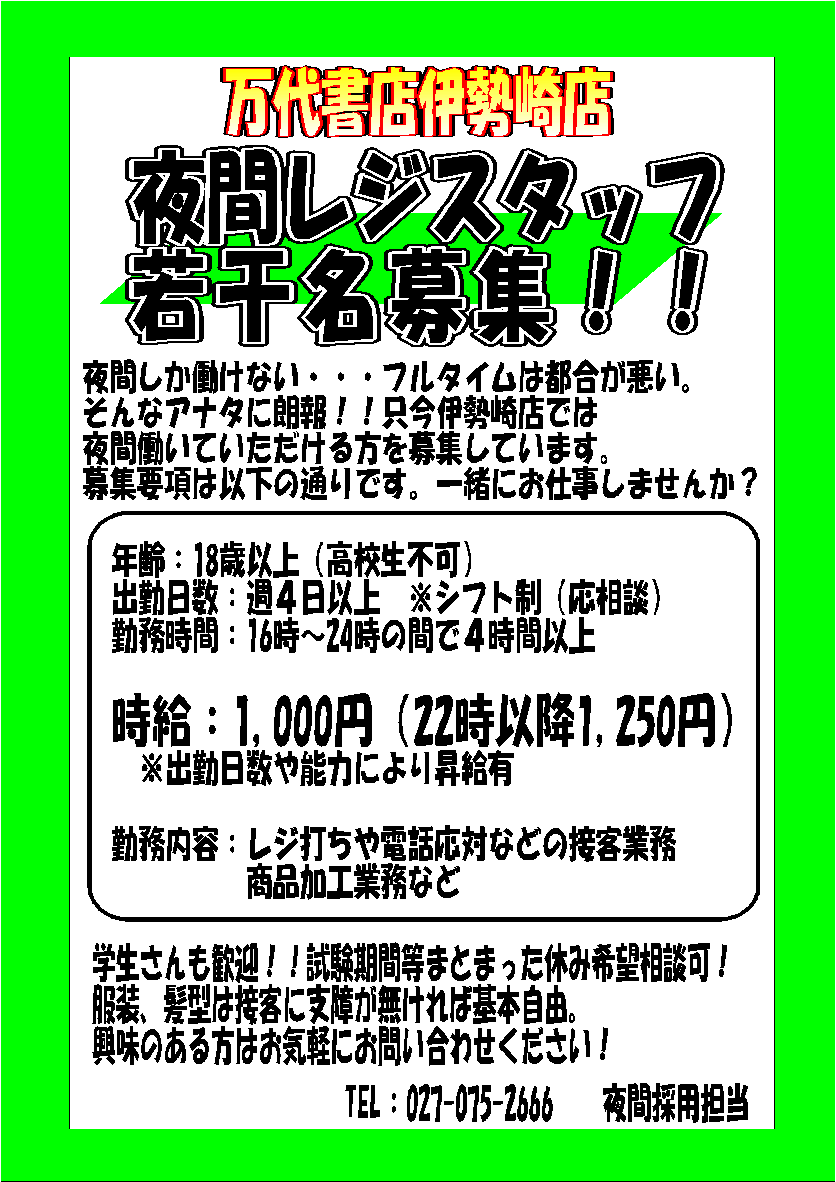 2023.08.21 お知らせ master_isesaki ★★アルバイト・夜間レジ スタッフ求人情報です!★★ ★求人情報★ コメントを残す コメントをキャンセルメールアドレスが公開されることはありません。 ※ が付いている欄は必須項目ですコメント ※ 名前 ※ メール ※ サイト 新しいコメントをメールで通知 新しい投稿をメールで受け取る Δ