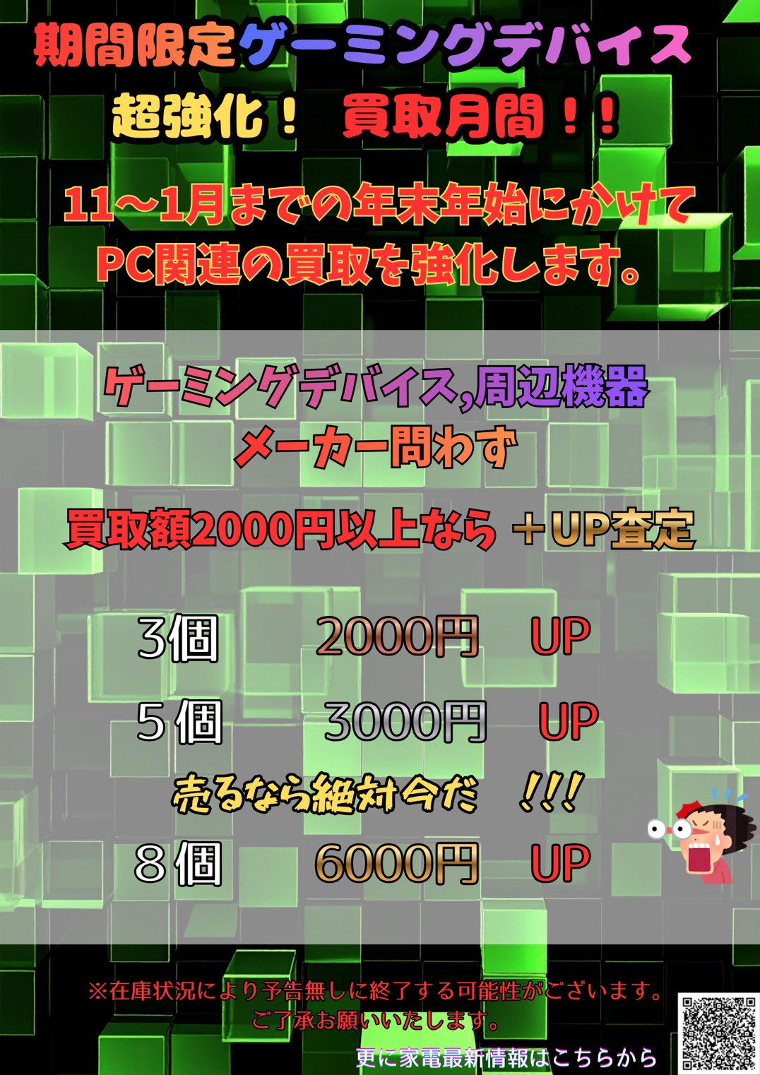 2025.11.24 買取告知 takalab_5 買取告知のお知らせです📢 #ゲーミング #RAZER #Logicool こんにちは! 家電担当のYです(^^) 買取告知のお知らせです📢 PC周辺機器を強化買取いたします!! 細かい詳細は買取告知をご覧くださいね(^。^) 家電を売るなら万代書店伊勢崎店です(^o^) コメントを残す コメントをキャンセルメールアドレスが公開されることはありません。 ※ が付いている欄は必須項目ですコメント ※ 名前 ※ メール ※ サイト 新しいコメントをメールで通知 新しい投稿をメールで受け取る Δ
