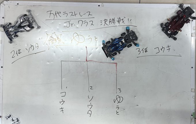 #ミニ四駆 ラストレースJr.クラスが無事に終了致しました! 最後の優勝者は ゆうと 様!2位 ソウタ 様3位 コウキ 様おめでとうございます🎊㊗️たくさんのご参加ありが…