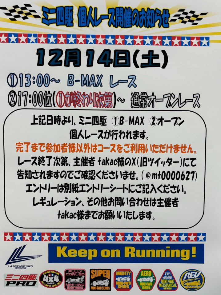 #ミニ四駆 個人レース開催のお知らせです! 同日に2種類のレースが行われます 両方のレースにご参加希望される場合はエントリーシート2箇所にご記名をお願い致します🙇♀þ…