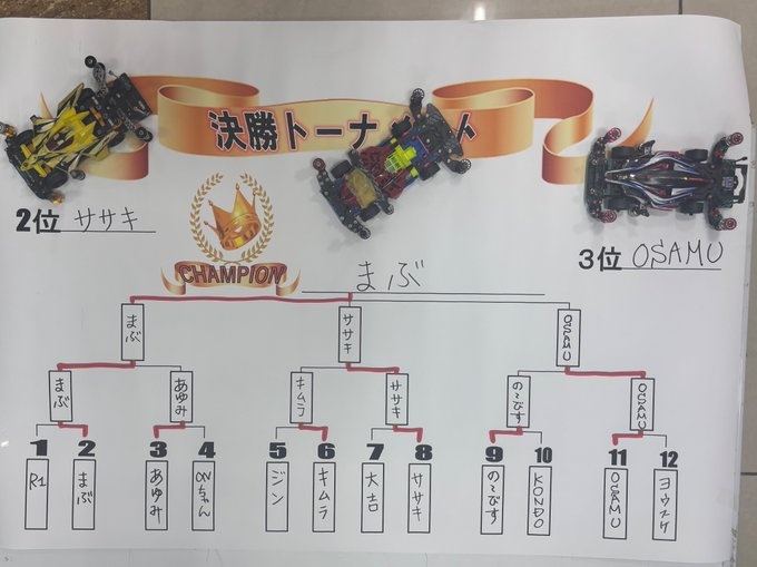 #ミニ四駆 月例レース オープンクラスが無事に終了いたしました!優勝は……まぶ 様!!!!おめでとう御座います🥳㊗️🎉 ご参加・ご協力下さいました皆様、ありがと…