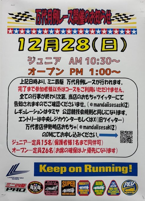 #ミニ四駆 本日開催の月例レース、、オープンクラスにまだ空きがございます☺️13:00より車検開始となりますのでもしお時間空いたよーなんて方はぜひご参加下さい😆 お待ちしており…