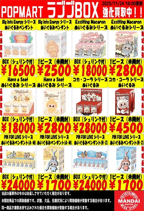 ラブブBOX買取告知更新しました♪#ラブブ #らぶぶ pic.twitter.com/arSZFblVKZ — 万代書店伊勢崎店☆おもちゃ☆ (@mandaiisesaki2) November 24, 20…