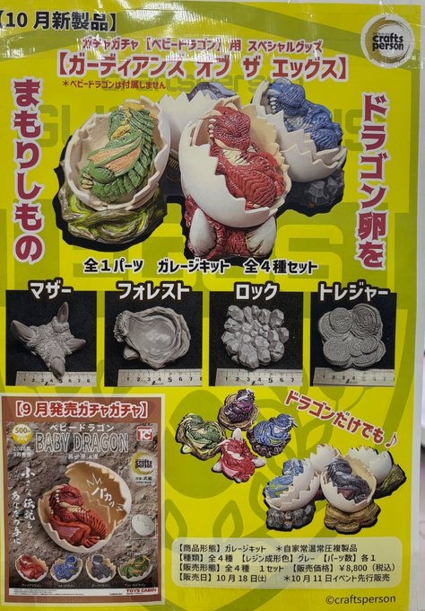 #ガレキ#筆塗り 9月発売! crafts person 武蔵様原型のガチャ@moguneko3 可愛いベビードラゴンちゃん🥰の専用台座、ご予約開始です!全4種のカラーに合わせて台座も4種セット…