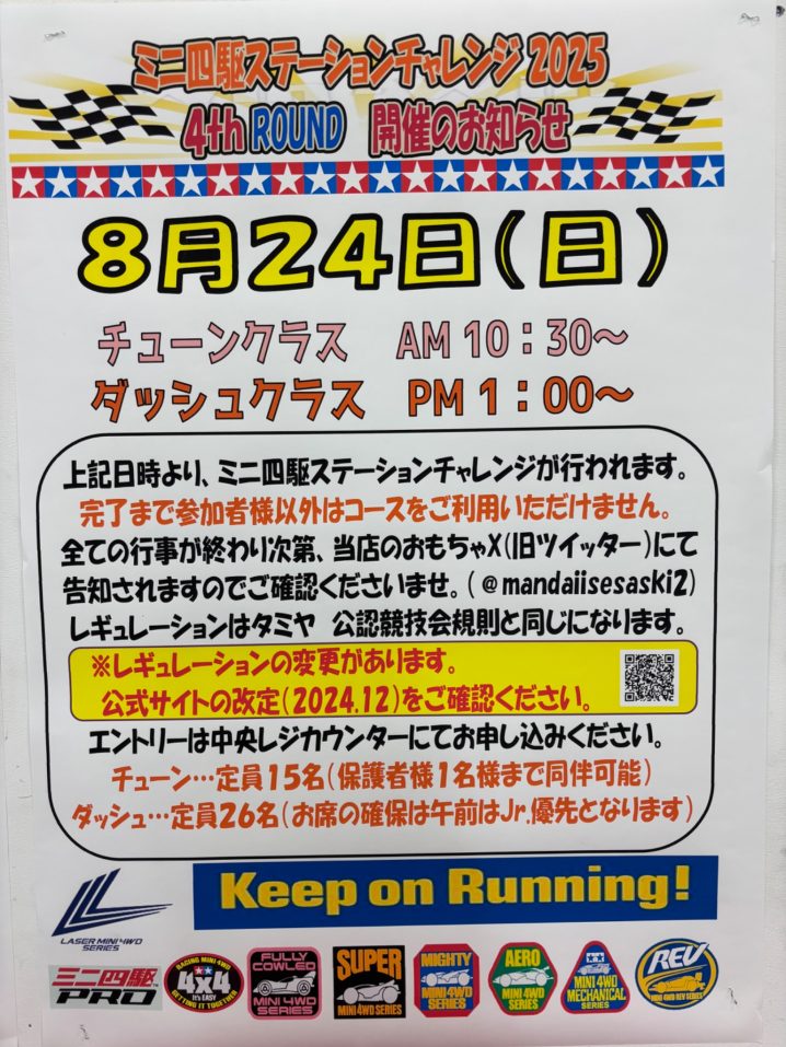 #ミニ四駆 さて皆様!タミヤステーションチャレンジ4th Round来週日曜日です!残念ながらエントリーが少なめ、、🥲今年のステチャレ最後の両軸モーターとなりますのでぜひご参加下さい🙇&#…