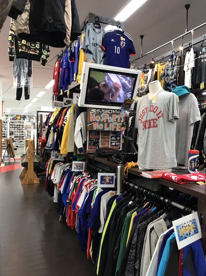 古着からスポーツコーナーのご紹介 Nike,adidasをはじめてとする スポーツユニフォームやTシャツ、ジャージ、アウターなどの衣類や バッグ、ランニングシューズなどを取り揃えております! 熱中症に気をつけながらみんな…