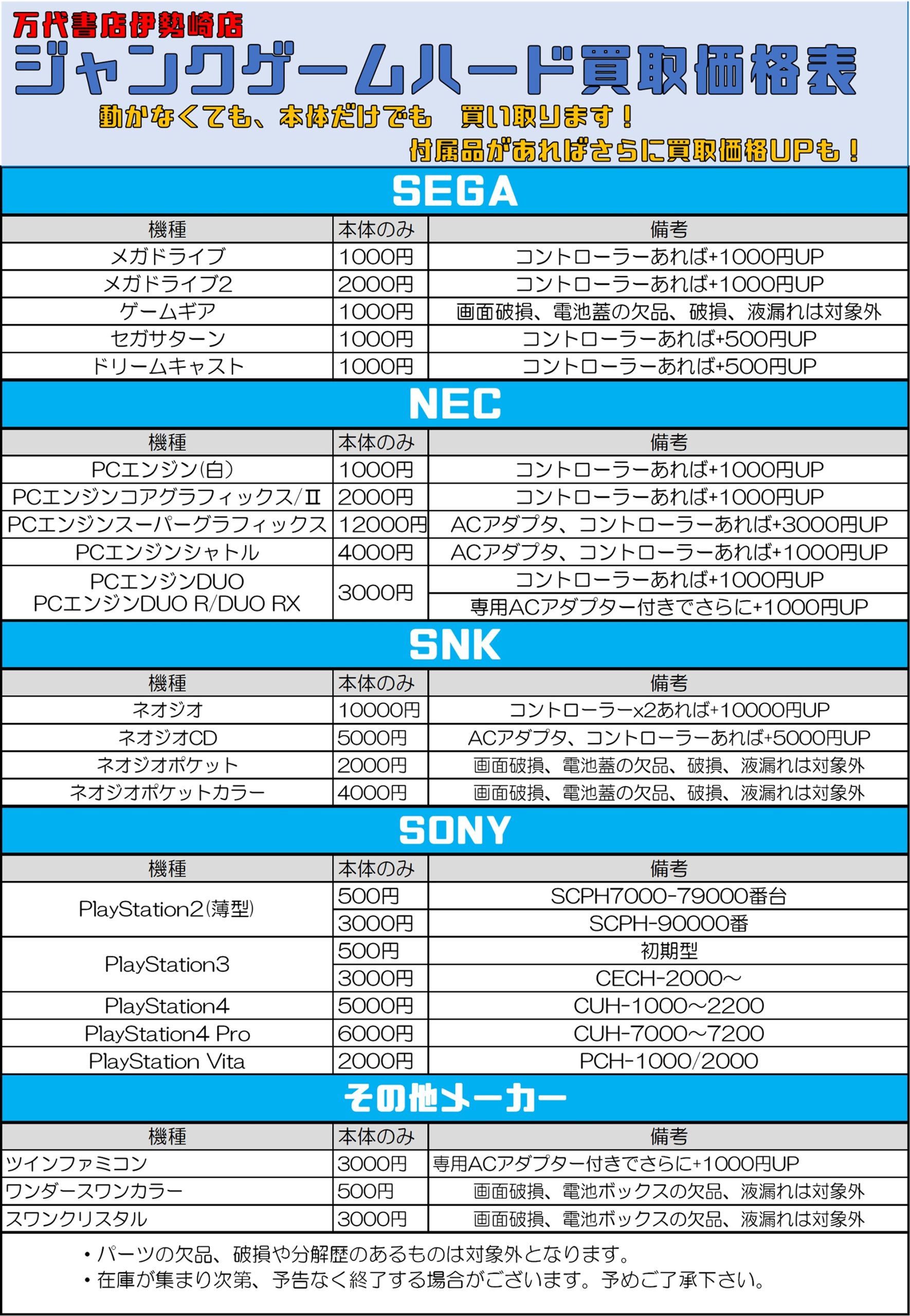 万代書店伊勢崎店 最新の買取情報はこちらから! 高く売る秘訣はココ☆ [wc_row] [wc_column...