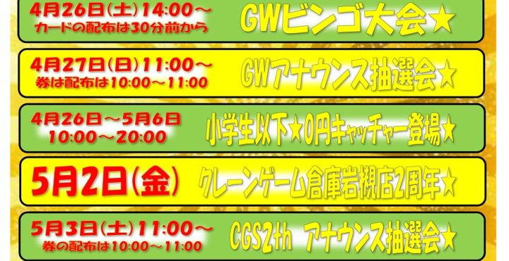 ★8月10日11日のビンゴ大会、キッズビンゴ大会の延期日程★ 延期していたイベントの日程が決まりました! ※当日の天候により再延期の可能性もございます **************** こちら↓もぜひチェッ…