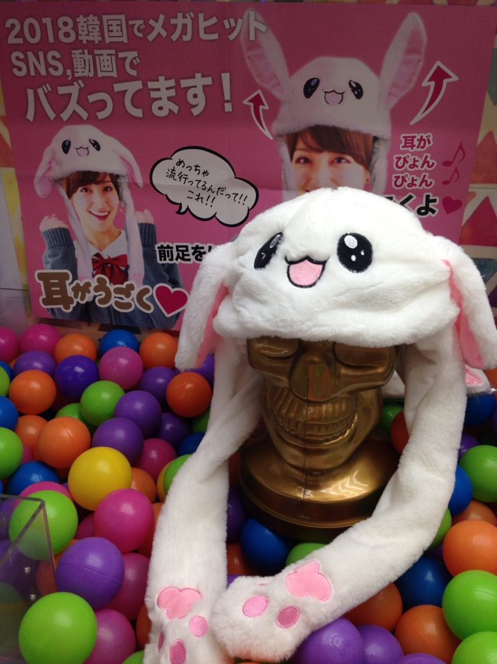 アミューズ入荷景品 耳が動く💓うさ耳ぼうし 入荷しました! 今とっても話題なうさ耳帽子です🐰✨ 肉球を握ると耳がぴょこぴょこ動いて可愛すぎると大人気景品です!😍…