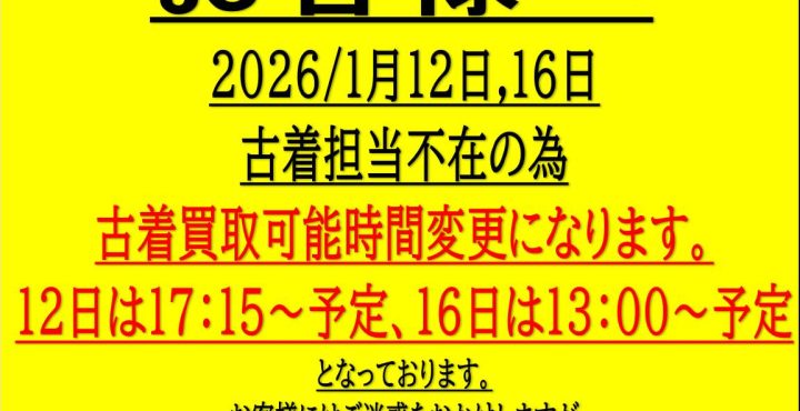 【部門担当出勤時間表】買取お持込時にご参考ください!【買取】