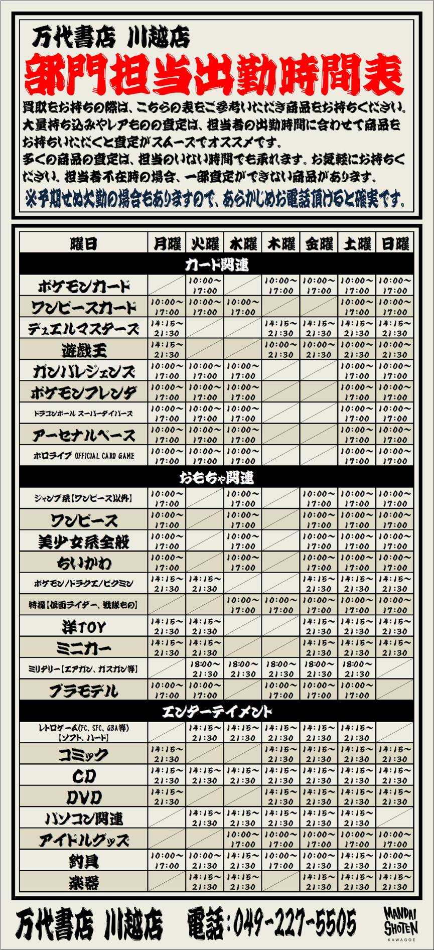 2024.09.21 買取情報 takalab_2 【部門担当出勤時間表】買取お持込時にご参考ください!【買取】 【部門担当出勤時間表】買取お持込時にご参考ください!【買取】 コメントを残す コメントをキャンセルメールアドレスが公開されることはありません。 ※ が付いている欄は必須項目ですコメント ※ 名前 ※ メール ※ サイト 新しいコメントをメールで通知 新しい投稿をメールで受け取る Δ