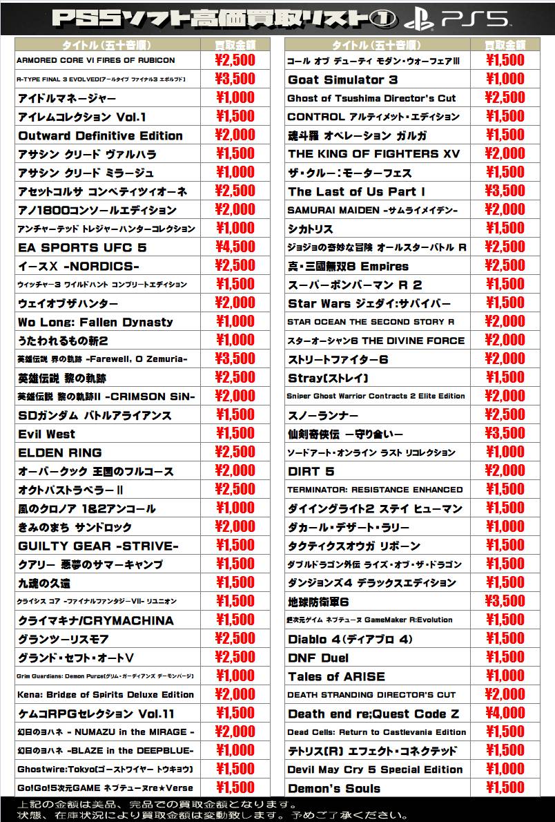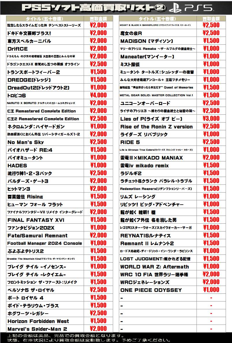 2025.03.06 買取情報 takalab_1 【SONY系ソフト】WEBチラシ更新しました!【WEBチラシ】 【SONY系ソフト】WEBチラシ更新しました!【WEBチラシ】 ※2025/3/6現在の価格となります。 在庫状況・状態によってお値段が変動いたします。予めご了承ください。 **************** こちら↓もぜひチェックしてみてくださいね♪(*´▽`*) ・最新のイベント情報はこちら ・最新の買取情報はこちら コメントを残す コメントをキャンセルメールアドレスが公開されることはありません。 ※ が付いている欄は必須項目ですコメント ※ 名前 ※ メール ※ サイト 新しいコメントをメールで通知 新しい投稿をメールで受け取る Δ