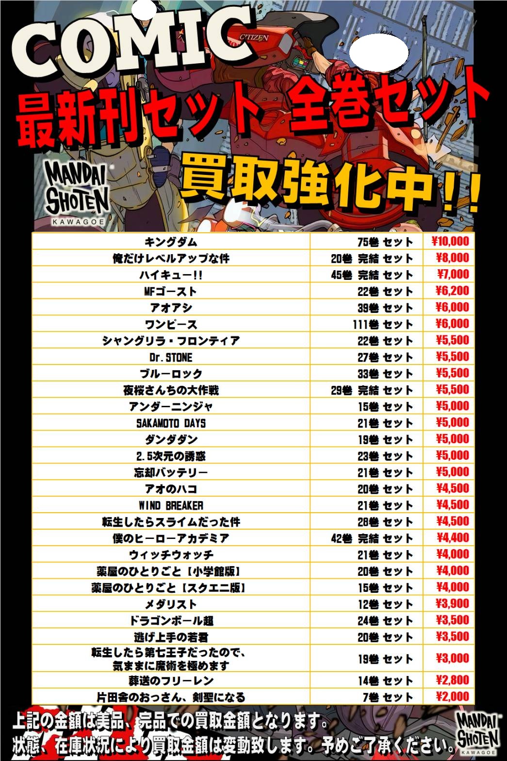 2025.05.15 買取情報 takalab_5 ◆コミックWEBチラシ更新しました!◆ ◇コミックコーナーよりお知らせ◇ コミックWEBチラシ更新しました!!📚📚 ※2025/5/15現在の価格となります。 在庫状況・状態によってお値段が変動いたします。予めご了承ください。 **************** こちら↓もぜひチェックしてみてくださいね♪(*´▽`*) ・最新のイベント情報はこちら ・最新の買取情報はこちら コメントを残す コメントをキャンセルメールアドレスが公開されることはありません。 ※ が付いている欄は必須項目ですコメント ※ 名前 ※ メール ※ サイト 新しいコメントをメールで通知 新しい投稿をメールで受け取る Δ