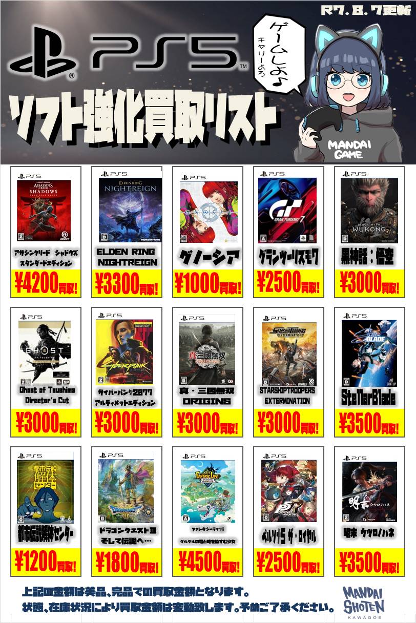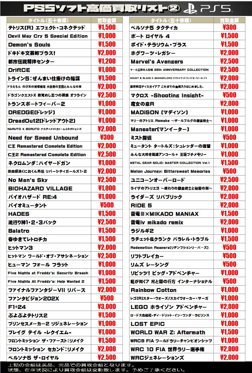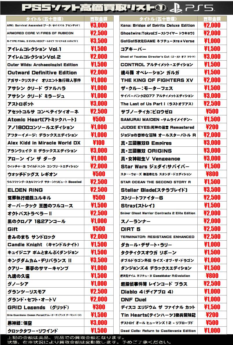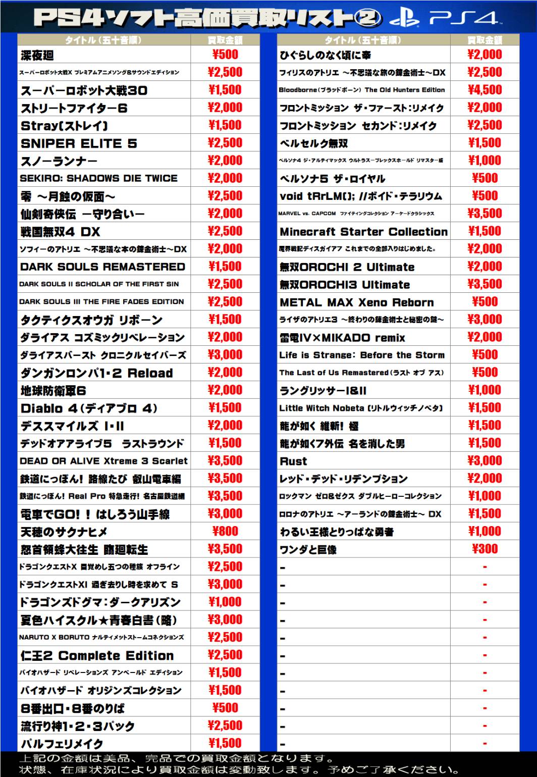 2025.08.07 買取情報 takalab_1 【SONY系ソフト】WEBチラシ更新しました!【WEBチラシ】 【SONY系ソフト】WEBチラシ更新しました!【WEBチラシ】 ※2025/8/7現在の価格となります。 在庫状況・状態によってお値段が変動いたします。予めご了承ください。 **************** こちら↓もぜひチェックしてみてくださいね♪(*´▽`*) ・最新のイベント情報はこちら ・最新の買取情報はこちら コメントを残す コメントをキャンセルメールアドレスが公開されることはありません。 ※ が付いている欄は必須項目ですコメント ※ 名前 ※ メール ※ サイト 新しいコメントをメールで通知 新しい投稿をメールで受け取る Δ