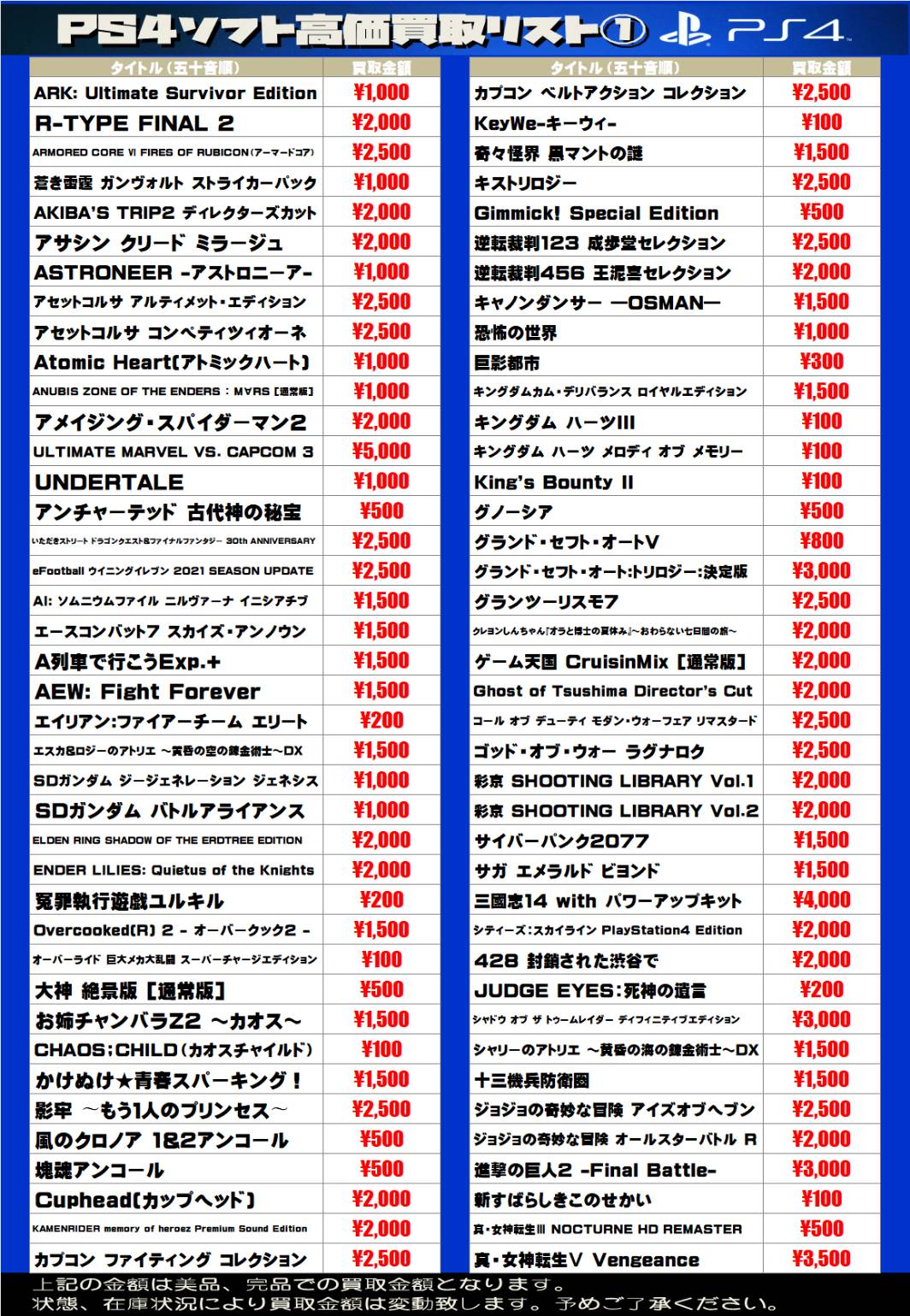 2025.08.17 買取情報 takalab_1 【SONY系ソフト】WEBチラシ更新しました!【WEBチラシ】 【SONY系ソフト】WEBチラシ更新しました!【WEBチラシ】 ※2025/8/17現在の価格となります。 在庫状況・状態によってお値段が変動いたします。予めご了承ください。 **************** こちら↓もぜひチェックしてみてくださいね♪(*´▽`*) ・最新のイベント情報はこちら ・最新の買取情報はこちら コメントを残す コメントをキャンセルメールアドレスが公開されることはありません。 ※ が付いている欄は必須項目ですコメント ※ 名前 ※ メール ※ サイト 新しいコメントをメールで通知 新しい投稿をメールで受け取る Δ