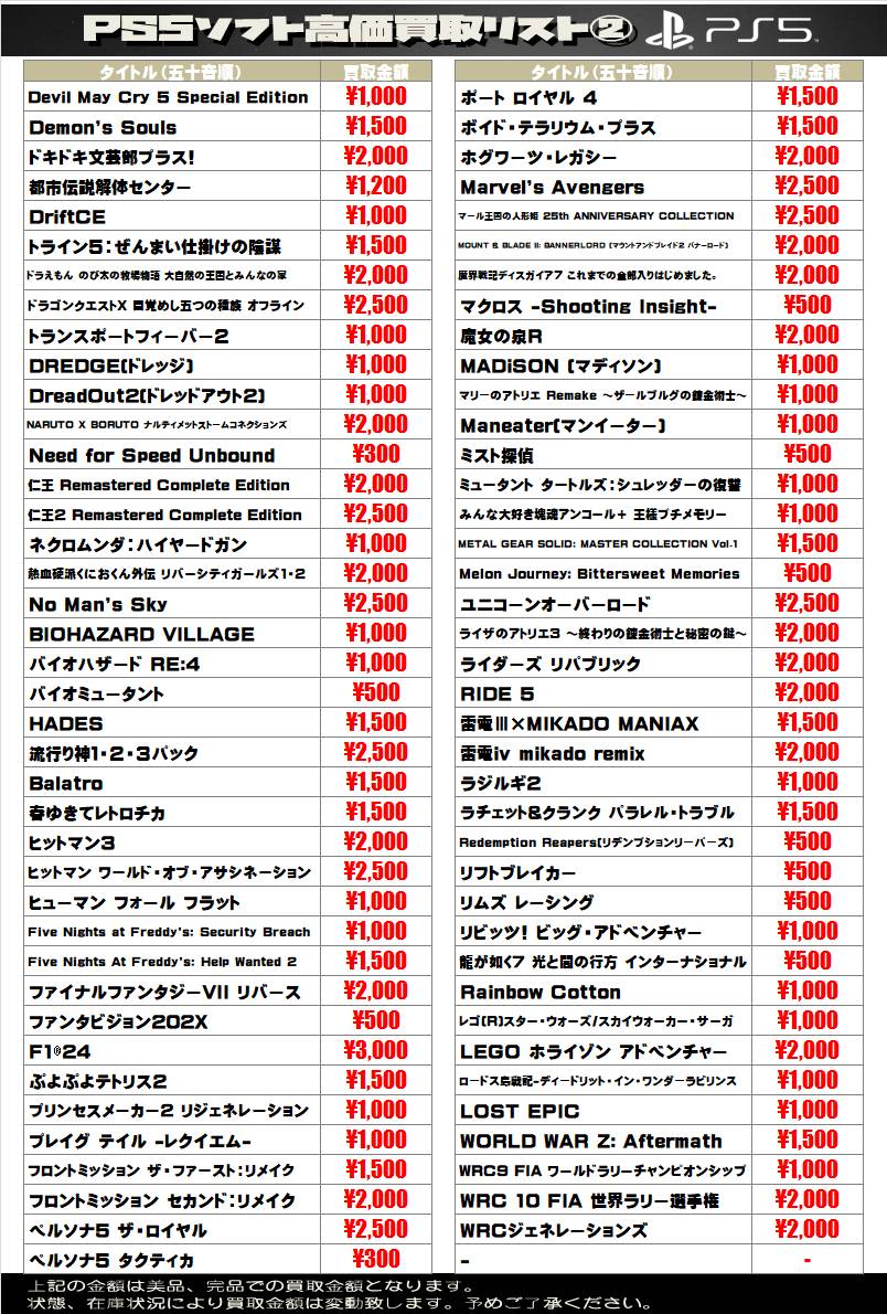 2025.09.05 買取情報 takalab_5 【SONY系ソフト】WEBチラシ更新しました!【WEBチラシ】 【SONY系ソフト】WEBチラシ更新しました!【WEBチラシ】 ※2025/9/4現在の価格となります。 在庫状況・状態によってお値段が変動いたします。予めご了承ください。 **************** こちら↓もぜひチェックしてみてくださいね♪(*´▽`*) ・最新のイベント情報はこちら ・最新の買取情報はこちら コメントを残す コメントをキャンセルメールアドレスが公開されることはありません。 ※ が付いている欄は必須項目ですコメント ※ 名前 ※ メール ※ サイト 新しいコメントをメールで通知 新しい投稿をメールで受け取る Δ