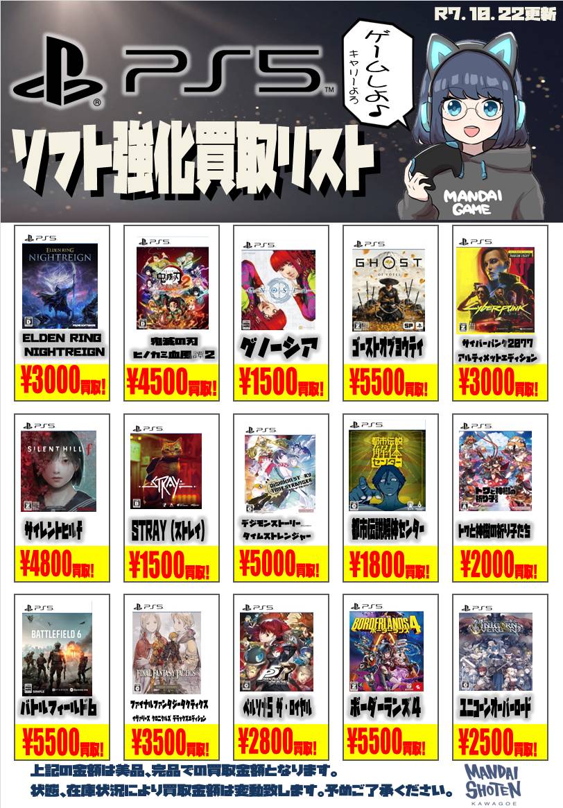 2025.10.23 買取情報 takalab_5 【SONY系ソフト】WEBチラシ更新しました!【WEBチラシ】 【SONY系ソフト】WEBチラシ更新しました!【WEBチラシ】 ※2025/10/23現在の価格となります。 在庫状況・状態によってお値段が変動いたします。予めご了承ください。 **************** こちら↓もぜひチェックしてみてくださいね♪(*´▽`*) ・最新のイベント情報はこちら ・最新の買取情報はこちら コメントを残す コメントをキャンセルメールアドレスが公開されることはありません。 ※ が付いている欄は必須項目ですコメント ※ 名前 ※ メール ※ サイト 新しいコメントをメールで通知 新しい投稿をメールで受け取る Δ