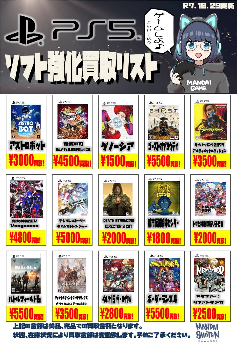 2025.10.30 買取情報 takalab_5 【SONY系ソフト】WEBチラシ更新しました!【WEBチラシ】 【SONY系ソフト】WEBチラシ更新しました!【WEBチラシ】 ※2025/10/30現在の価格となります。 在庫状況・状態によってお値段が変動いたします。予めご了承ください。 **************** こちら↓もぜひチェックしてみてくださいね♪(*´▽`*) ・最新のイベント情報はこちら ・最新の買取情報はこちら コメントを残す コメントをキャンセルメールアドレスが公開されることはありません。 ※ が付いている欄は必須項目ですコメント ※ 名前 ※ メール ※ サイト 新しいコメントをメールで通知 新しい投稿をメールで受け取る Δ