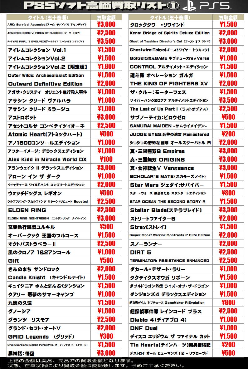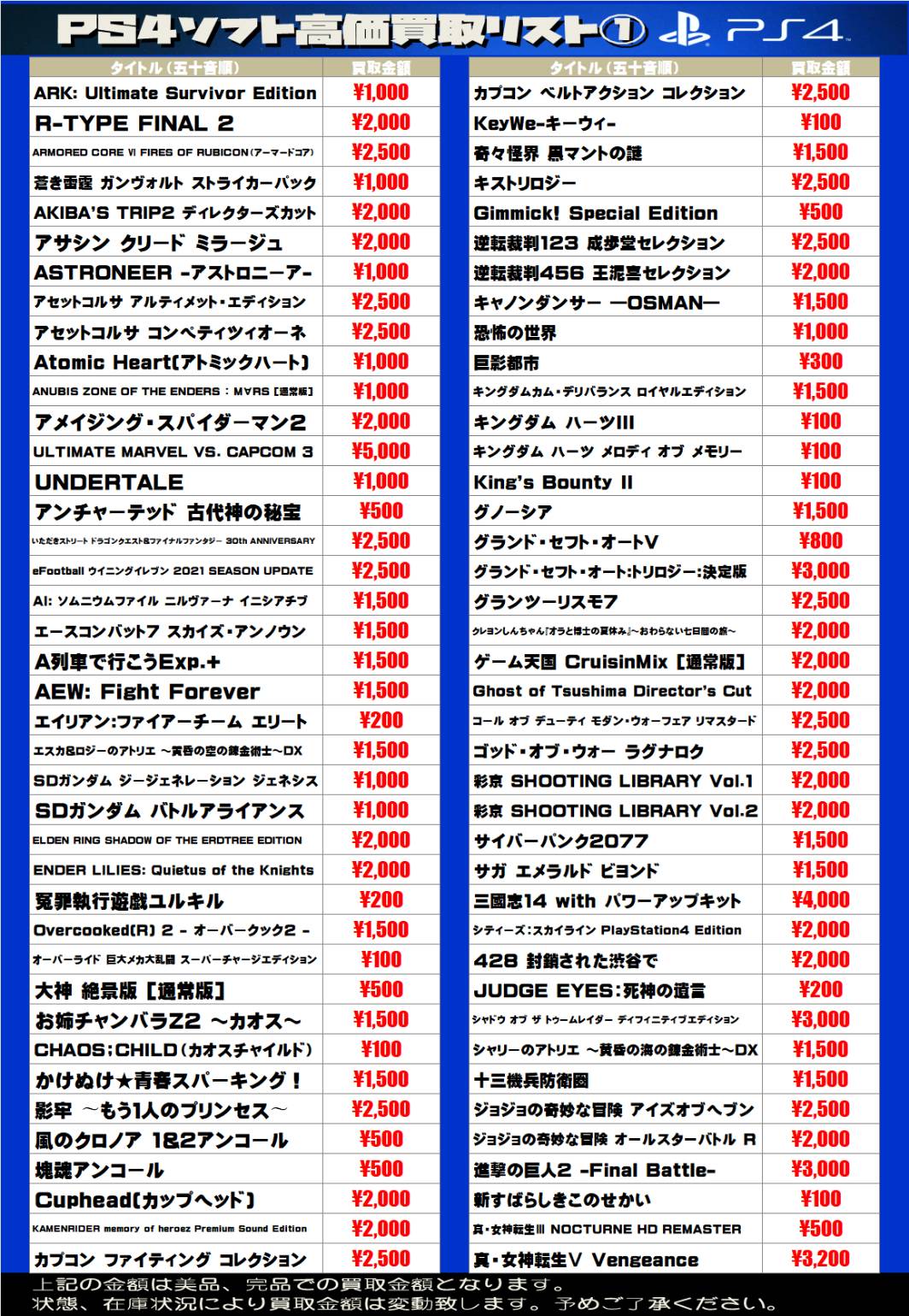 2025.11.08 買取情報 takalab_1 【SONY系ソフト】WEBチラシ更新しました!【WEBチラシ】 【SONY系ソフト】WEBチラシ更新しました!【WEBチラシ】 ※2025/11/8現在の価格となります。 在庫状況・状態によってお値段が変動いたします。予めご了承ください。 **************** こちら↓もぜひチェックしてみてくださいね♪(*´▽`*) ・最新のイベント情報はこちら ・最新の買取情報はこちら コメントを残す コメントをキャンセルメールアドレスが公開されることはありません。 ※ が付いている欄は必須項目ですコメント ※ 名前 ※ メール ※ サイト 新しいコメントをメールで通知 新しい投稿をメールで受け取る Δ