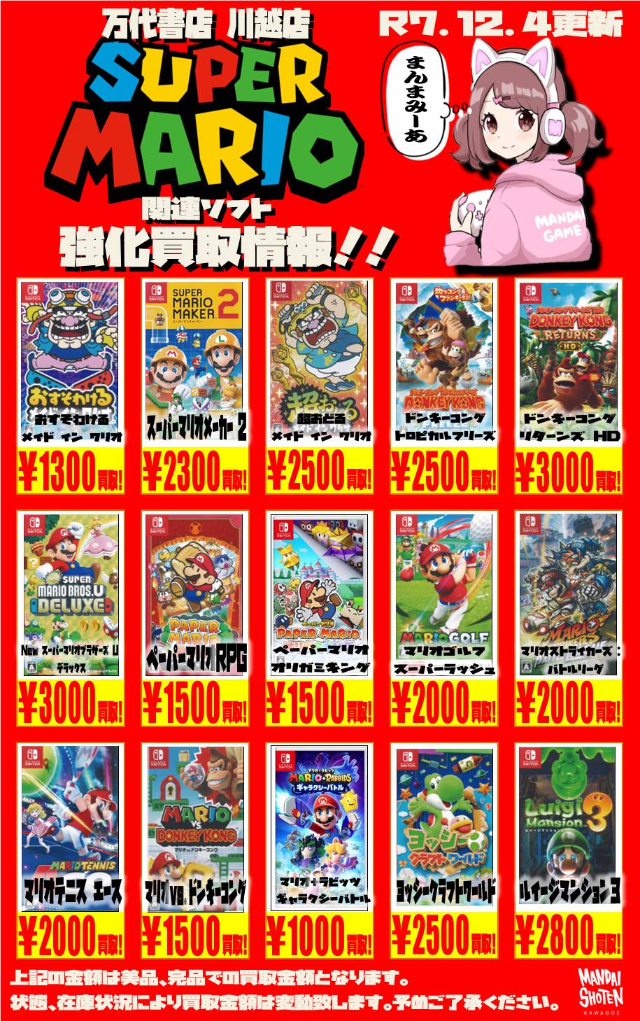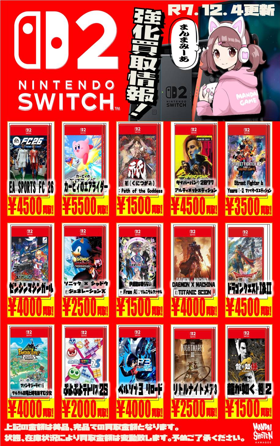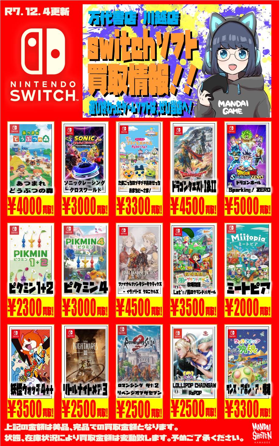 2025.12.06 買取情報 takalab_5 【Switch系ソフト】WEBチラシ更新しました!【WEBチラシ】 【Switch系ソフト】WEBチラシ更新しました!【WEBチラシ】 ※2025/12/6現在の価格となります。 在庫状況・状態によってお値段が変動いたします。予めご了承ください。 **************** こちら↓もぜひチェックしてみてくださいね♪(*´▽`*) ・最新のイベント情報はこちら ・最新の買取情報はこちら コメントを残す コメントをキャンセルメールアドレスが公開されることはありません。 ※ が付いている欄は必須項目ですコメント ※ 名前 ※ メール ※ サイト 新しいコメントをメールで通知 新しい投稿をメールで受け取る Δ