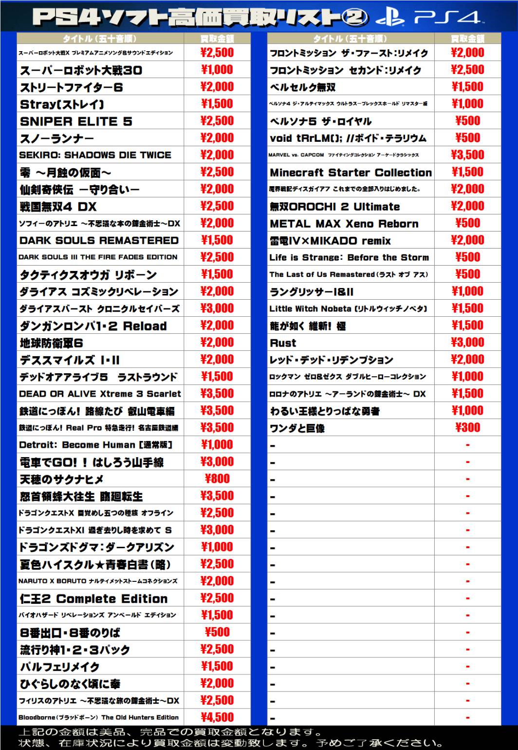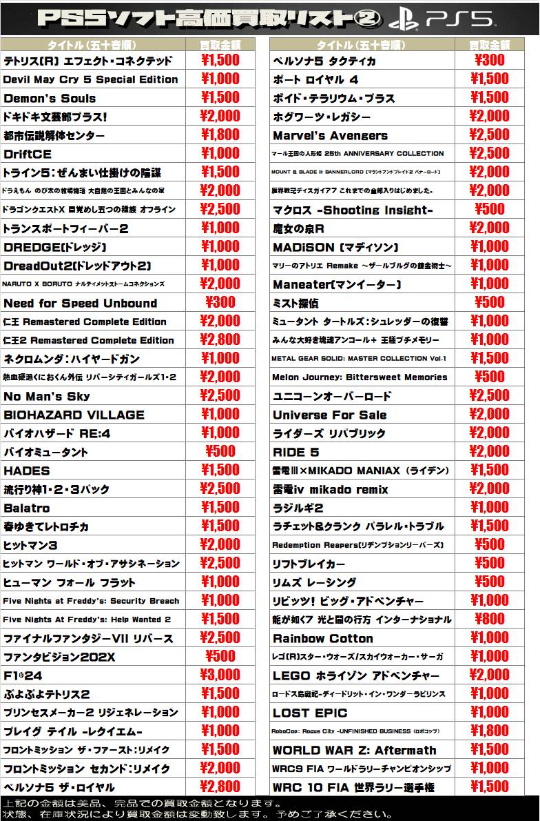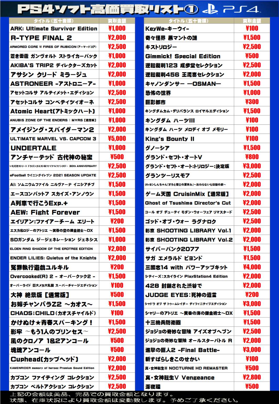 2025.12.06 買取情報 takalab_5 【SONY系ソフト】WEBチラシ更新しました!【WEBチラシ】 【SONY系ソフト】WEBチラシ更新しました!【WEBチラシ】 ※2025/12/6現在の価格となります。 在庫状況・状態によってお値段が変動いたします。予めご了承ください。 **************** こちら↓もぜひチェックしてみてくださいね♪(*´▽`*) ・最新のイベント情報はこちら ・最新の買取情報はこちら コメントを残す コメントをキャンセルメールアドレスが公開されることはありません。 ※ が付いている欄は必須項目ですコメント ※ 名前 ※ メール ※ サイト 新しいコメントをメールで通知 新しい投稿をメールで受け取る Δ