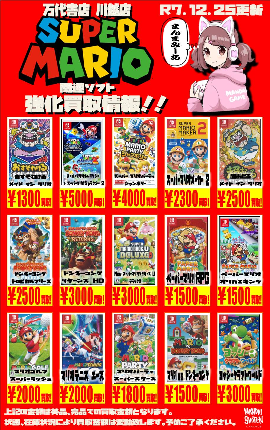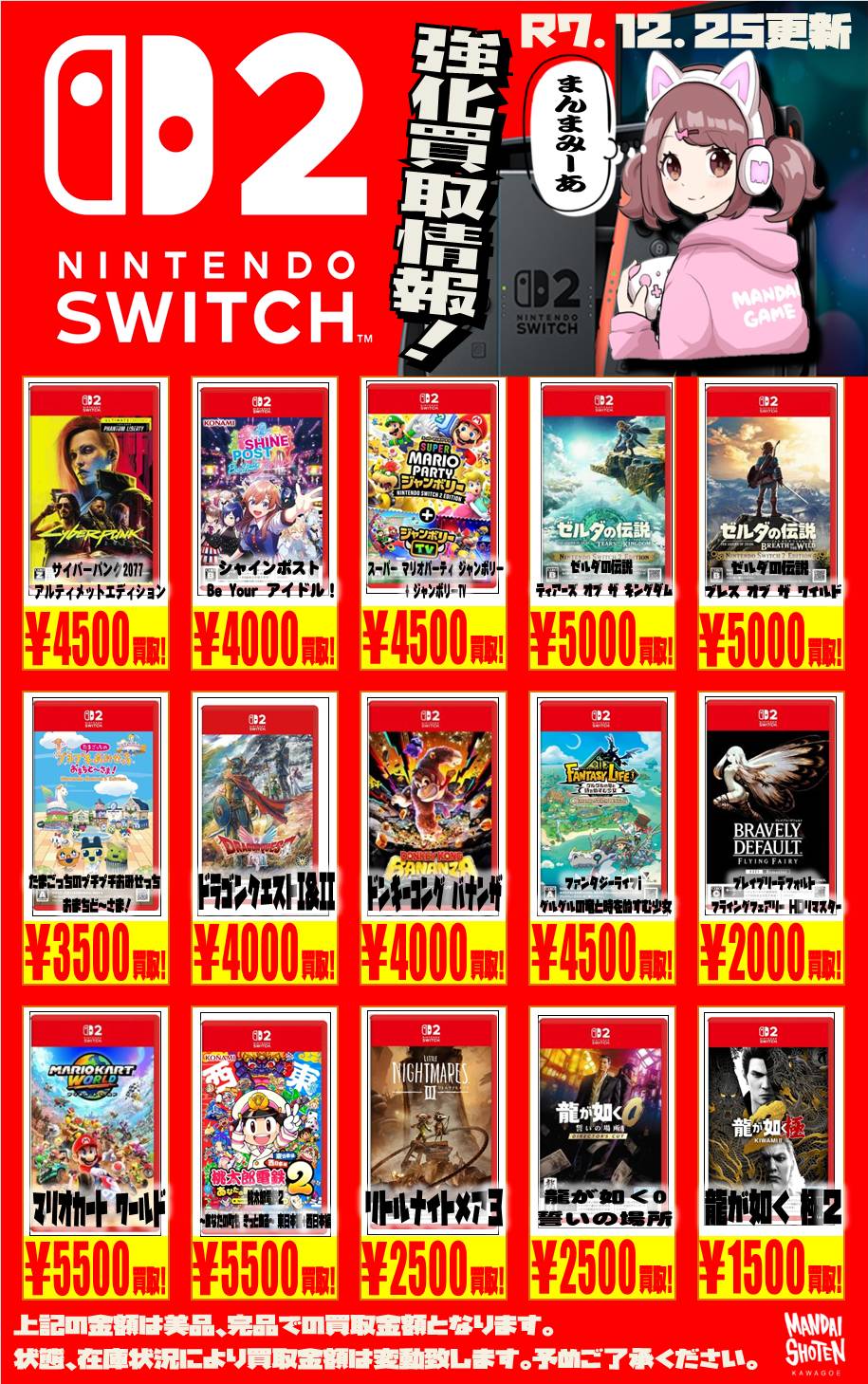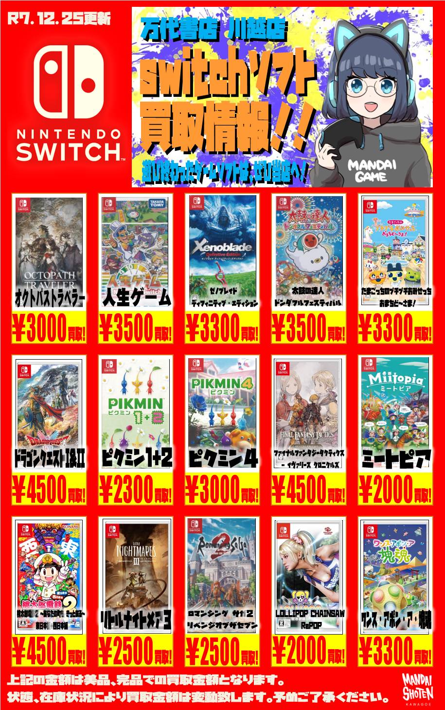 2025.12.25 買取情報 takalab_4 【Switch系ソフト】WEBチラシ更新しました!【WEBチラシ】 【Switch系ソフト】WEBチラシ更新しました!【WEBチラシ】 ※2025/12/25現在の価格となります。 在庫状況・状態によってお値段が変動いたします。予めご了承ください。 **************** こちら↓もぜひチェックしてみてくださいね♪(*´▽`*) ・最新のイベント情報はこちら ・最新の買取情報はこちら コメントを残す コメントをキャンセルメールアドレスが公開されることはありません。 ※ が付いている欄は必須項目ですコメント ※ 名前 ※ メール ※ サイト 新しいコメントをメールで通知 新しい投稿をメールで受け取る Δ