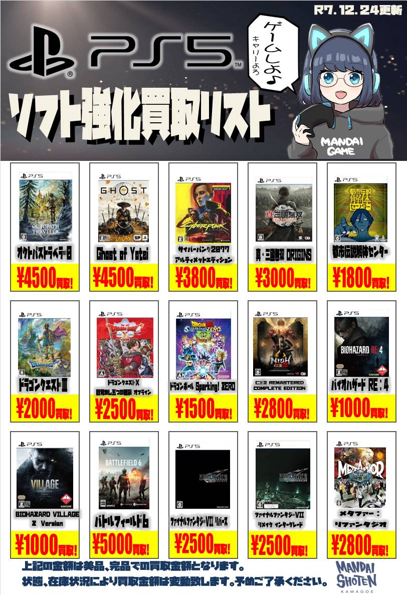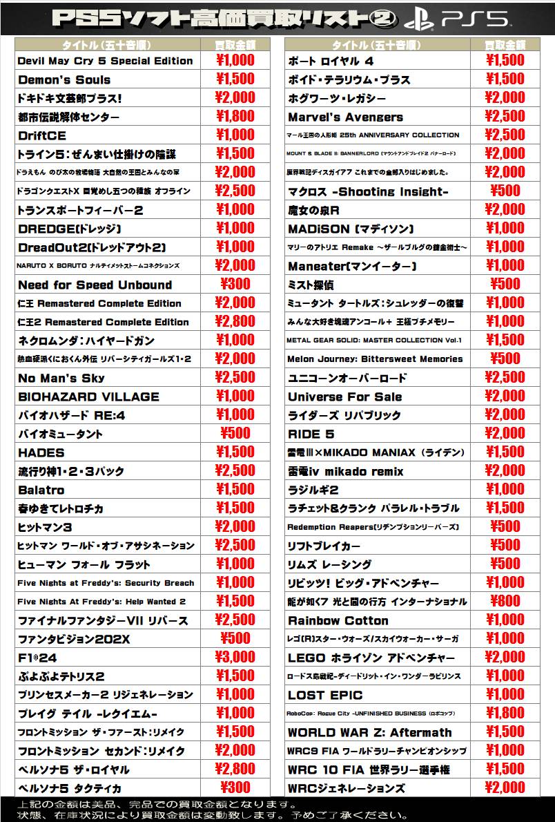 2025.12.25 買取情報 takalab_4 【SONY系ソフト】WEBチラシ更新しました!【WEBチラシ】 【SONY系ソフト】WEBチラシ更新しました!【WEBチラシ】 ※2025/12/25現在の価格となります。 在庫状況・状態によってお値段が変動いたします。予めご了承ください。 **************** こちら↓もぜひチェックしてみてくださいね♪(*´▽`*) ・最新のイベント情報はこちら ・最新の買取情報はこちら コメントを残す コメントをキャンセルメールアドレスが公開されることはありません。 ※ が付いている欄は必須項目ですコメント ※ 名前 ※ メール ※ サイト 新しいコメントをメールで通知 新しい投稿をメールで受け取る Δ