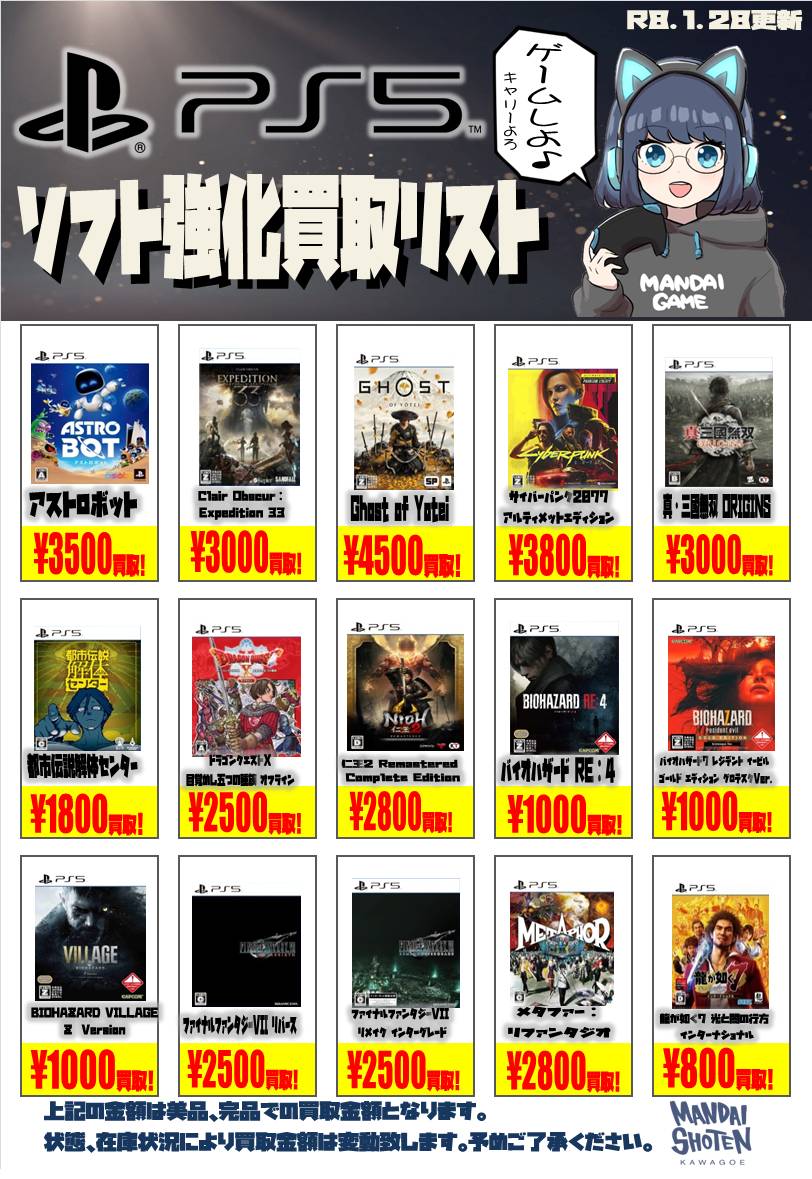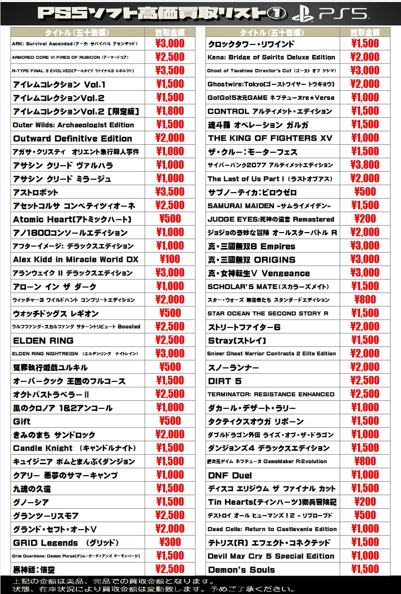 2026.01.29 買取情報 takalab_5 【SONY系ソフト】WEBチラシ更新しました!【WEBチラシ】 【SONY系ソフト】WEBチラシ更新しました!【WEBチラシ】 ※2026/1/29現在の価格となります。 在庫状況・状態によってお値段が変動いたします。予めご了承ください。 **************** こちら↓もぜひチェックしてみてくださいね♪(*´▽`*) ・最新のイベント情報はこちら ・最新の買取情報はこちら コメントを残す コメントをキャンセルメールアドレスが公開されることはありません。 ※ が付いている欄は必須項目ですコメント ※ 名前 ※ メール ※ サイト 新しいコメントをメールで通知 新しい投稿をメールで受け取る Δ