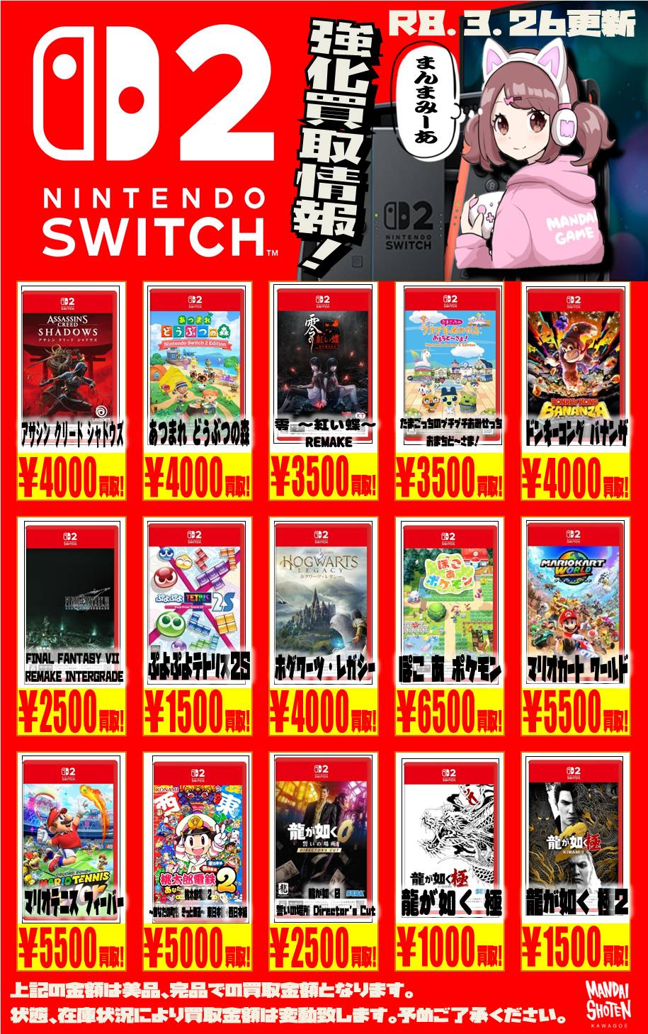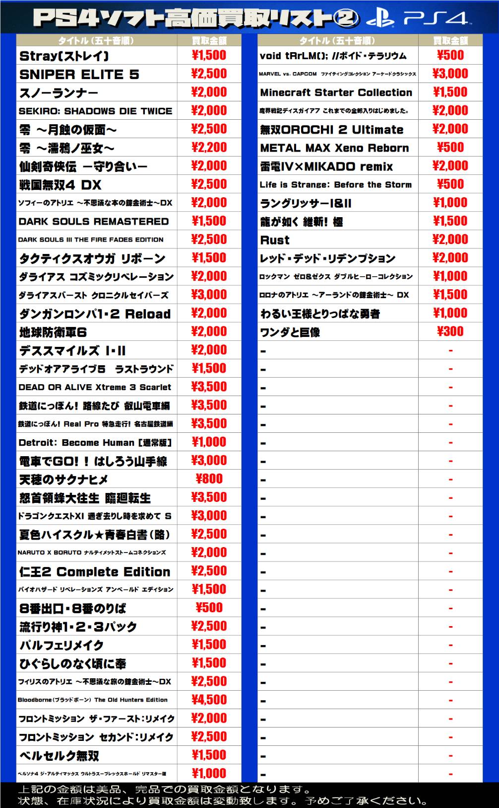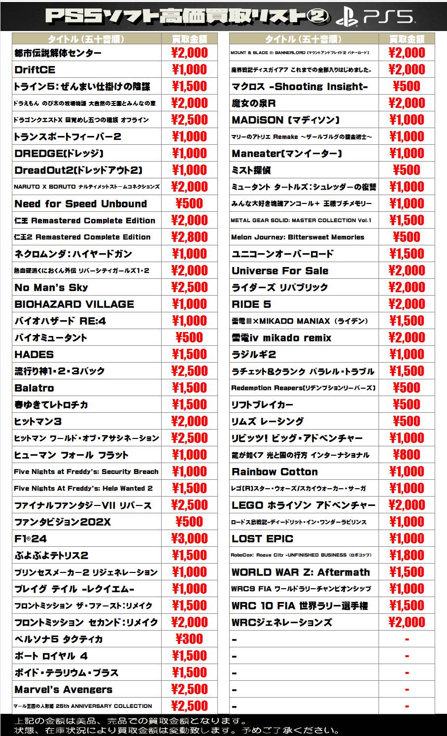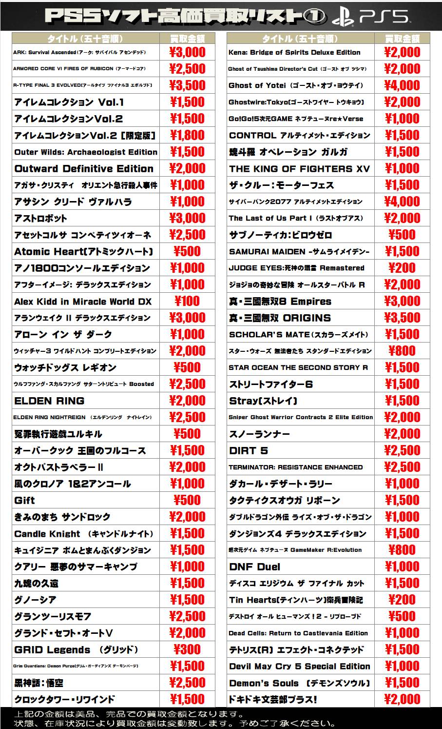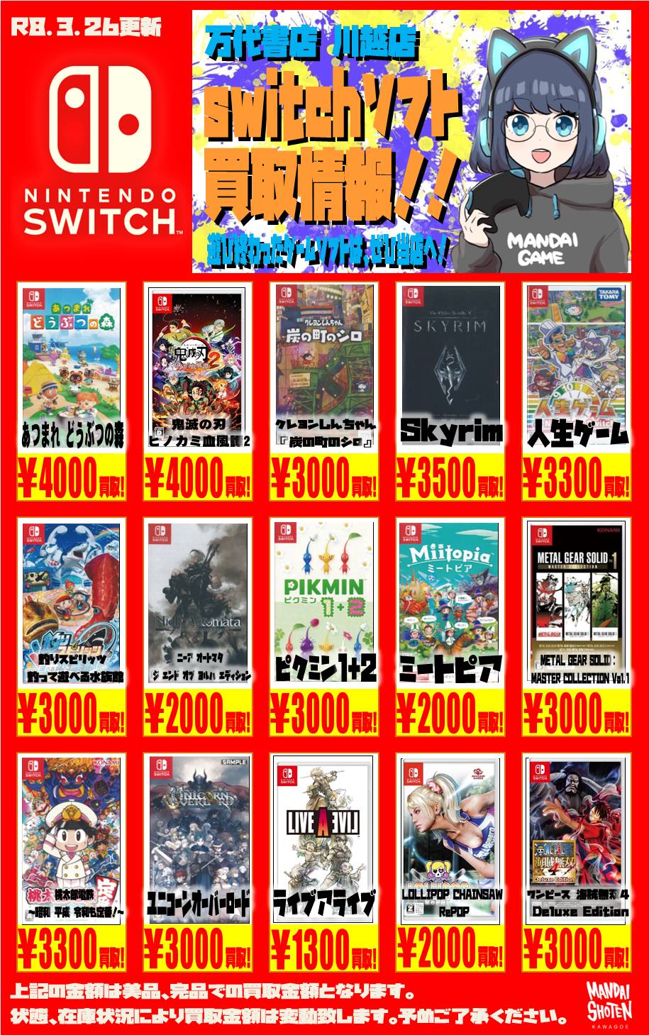 2026.03.26 買取情報 takalab_5 【SONY系ソフト】WEBチラシ更新しました!【Switch系ソフト】WEBチラシ更新しました!【WEBチラシ】 【SONY系ソフト】WEBチラシ更新しました!【WEBチラシ】 【Switch系ソフト】WEBチラシ更新しました!【WEBチラシ】 ※2026/3/26現在の価格となります。 在庫状況・状態によってお値段が変動いたします。予めご了承ください。 **************** こちら↓もぜひチェックしてみてくださいね♪(*´▽`*) ・最新のイベント情報はこちら ・最新の買取情報はこちら コメントを残す コメントをキャンセルメールアドレスが公開されることはありません。 ※ が付いている欄は必須項目ですコメント ※ 名前 ※ メール ※ サイト 新しいコメントをメールで通知 新しい投稿をメールで受け取る Δ