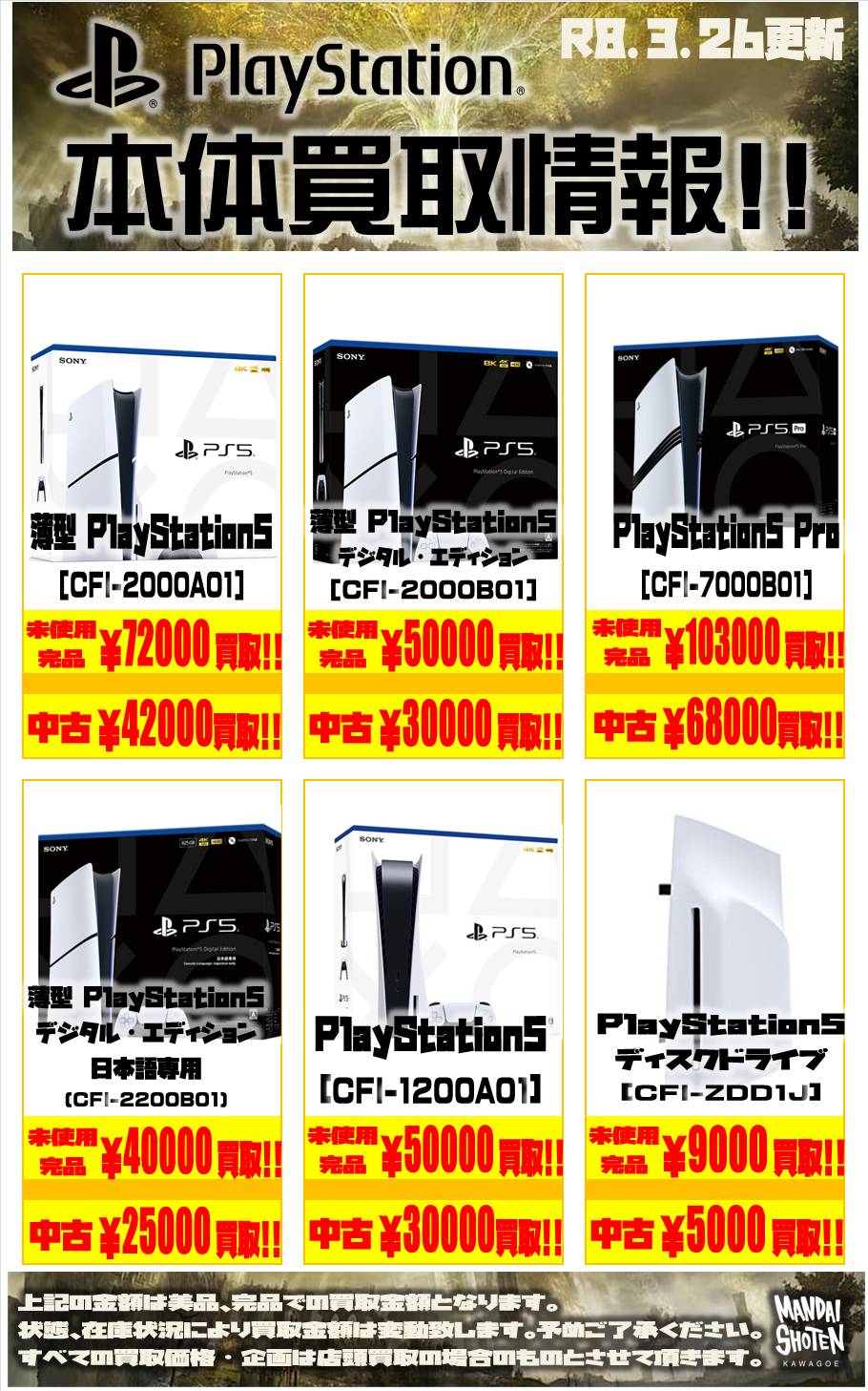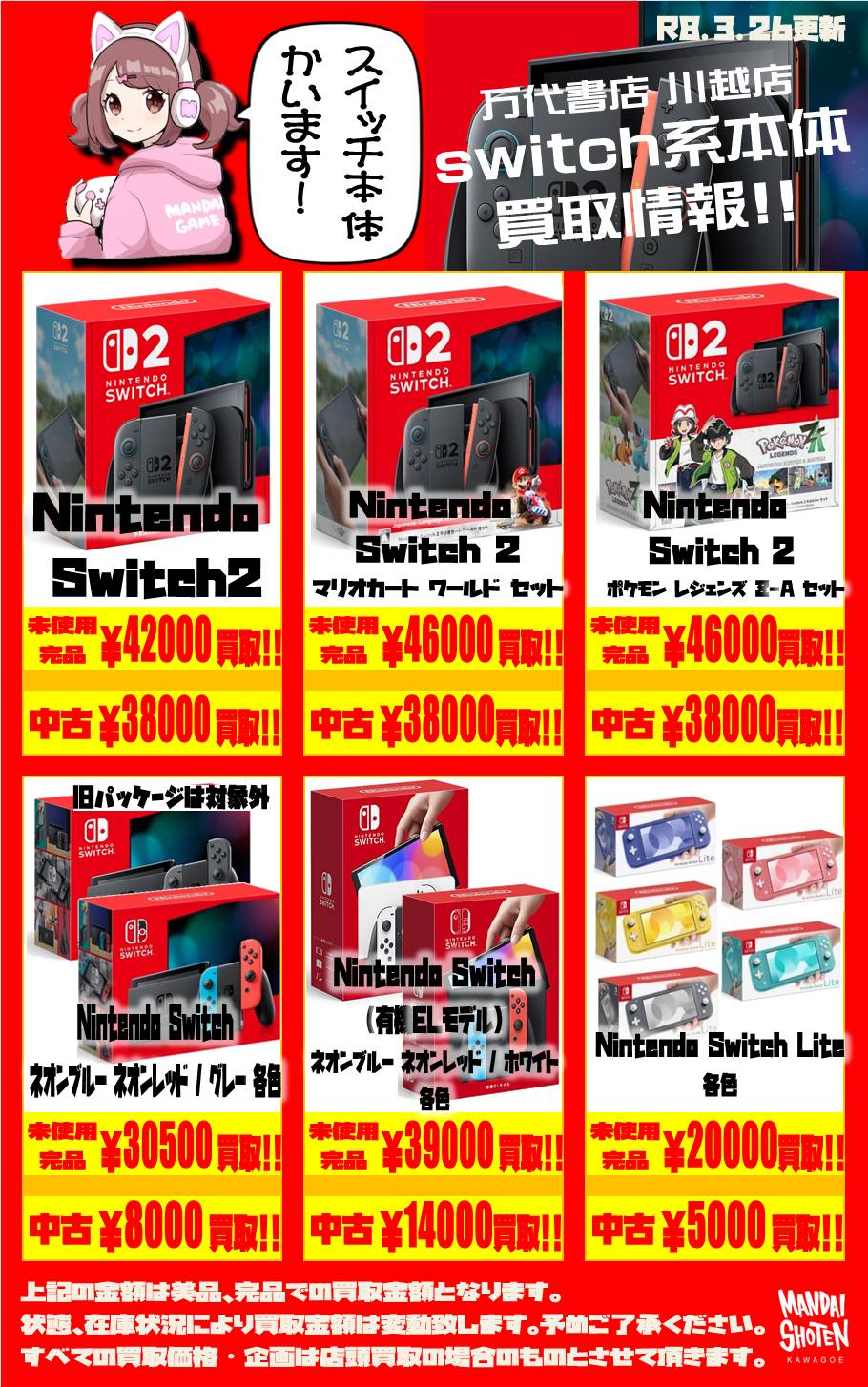 2026.03.26 買取情報 takalab_5 【ゲームハード】WEBチラシ更新しました!【WEBチラシ】 【ゲームハード】WEBチラシ更新しました!【WEBチラシ】 ※2026/3/26現在の価格となります。 在庫状況・状態によってお値段が変動いたします。予めご了承ください。 **************** こちら↓もぜひチェックしてみてくださいね♪(*´▽`*) ・最新のイベント情報はこちら ・最新の買取情報はこちら コメントを残す コメントをキャンセルメールアドレスが公開されることはありません。 ※ が付いている欄は必須項目ですコメント ※ 名前 ※ メール ※ サイト 新しいコメントをメールで通知 新しい投稿をメールで受け取る Δ