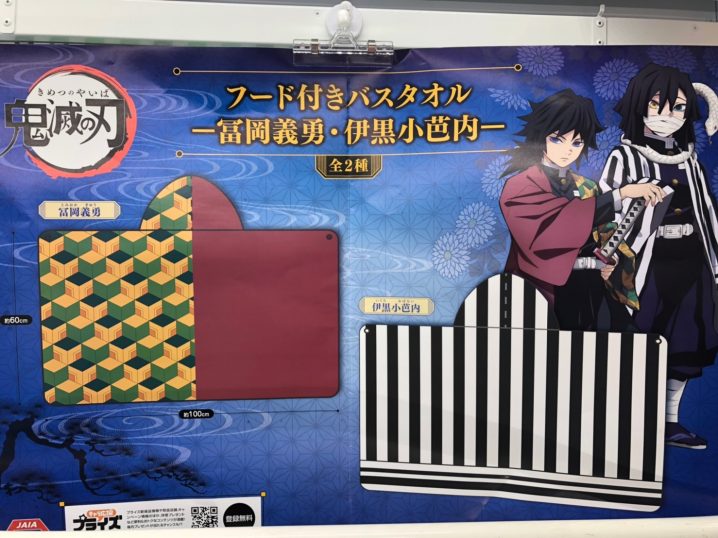 アミューズメントコーナーより新景品入荷の御案内です!!\(*^ω^*)/ ①鬼滅の刃 フード付きバスタオル ー冨岡義勇・伊黒小芭内ー 全2種類 ②鬼滅の刃 リールパスケース第三弾 全3種 本日は、大人気鬼滅…