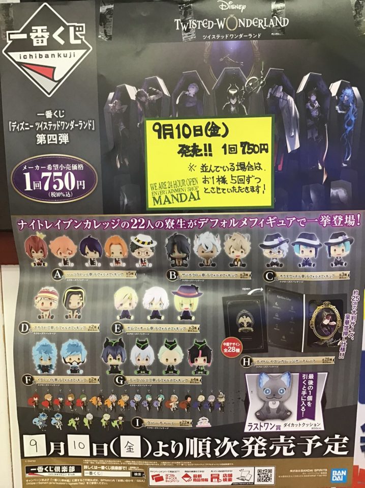 アミューズコーナーより一番くじのお知らせです📢 明日9/10(金)に本館1階レジにて ツイステッドワンダーランドの一番くじ を販売致します✨ 1回750円となっております🙇&…
