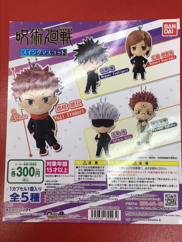 アミューズメントコーナーガチャの森より入荷情報です‼️ 大人気呪術廻戦スイングマスコットと私服キーホルダー入荷してきました! 数少ないのでお早めに回しに来てくださいね‼þ…