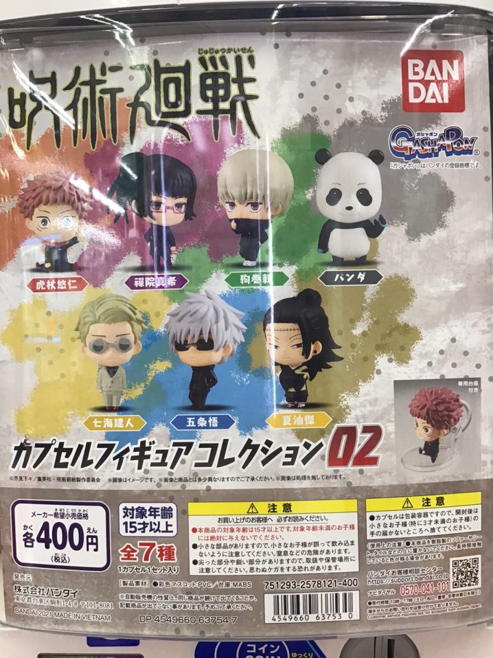 ★アミューズメントコーナーガチャの森より入荷情報★ ①呪術廻戦カプセルフィギュアコレクション ②呪術廻戦サコッシュ ③呪術廻戦フィギュアマスコット ④鬼滅の刃マスキングテープ ⑤MARVEL アベンジャーズ/エンドゲーム…