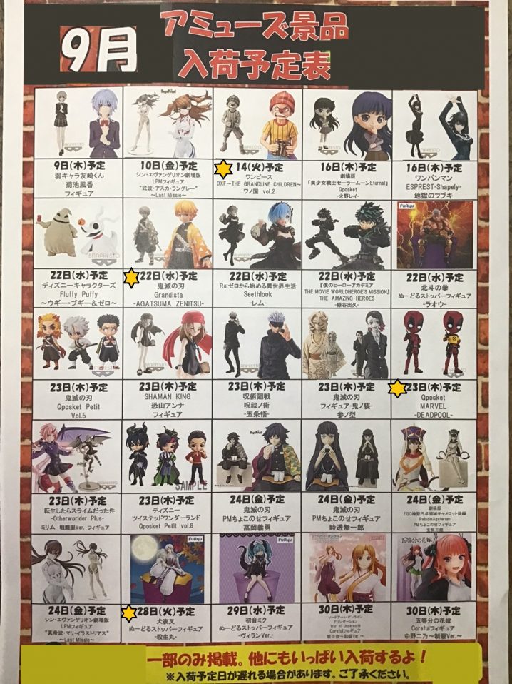 アミューズコーナーより入荷景品情報のお知らせです‼️ 9月の入荷告知が出来上がりました✨ 今月もたくさん良い景品が入荷予定となってますのでお楽しみに♬