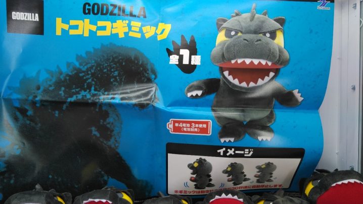 アミューズより景品入荷の御案内です! ①GODZILLAトコトコギミック ②トムとジェリー折りたたみ傘 全2種類 ③のびーるにゃんこBIGぬいぐるみ 是非getしに来て下さい!