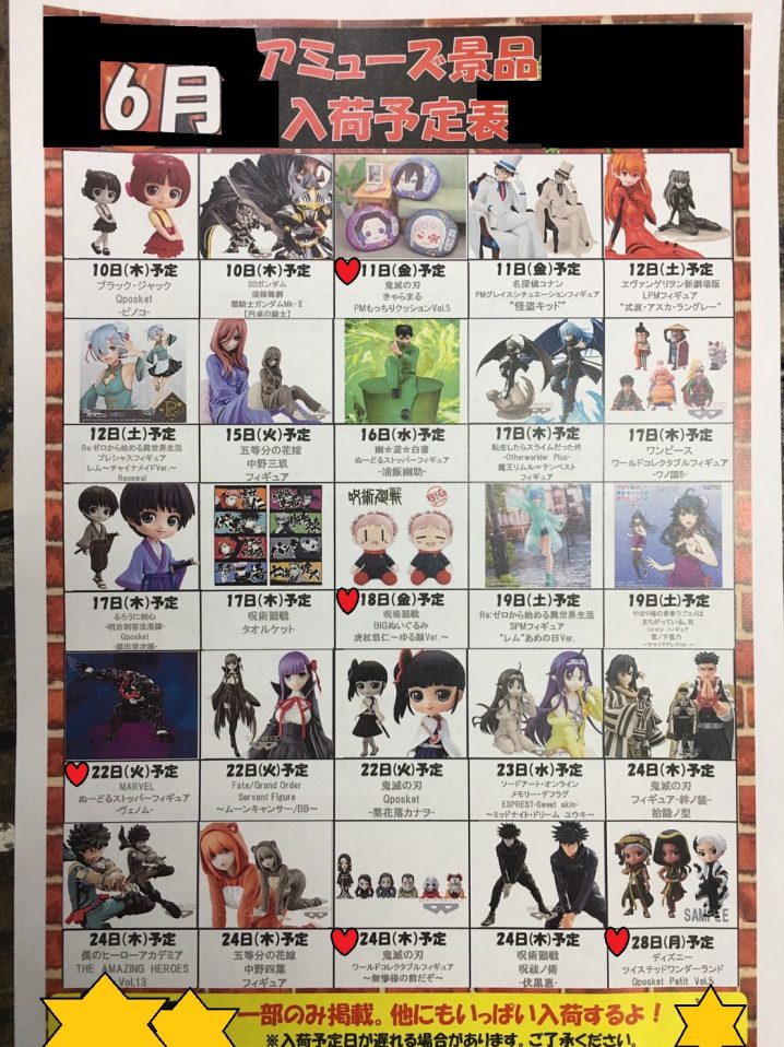 アミューズメントコーナーより入荷告知のお知らせ💁です‼️ 6月の入荷予定表出来上がりましたーーーっ‼️⭐️…