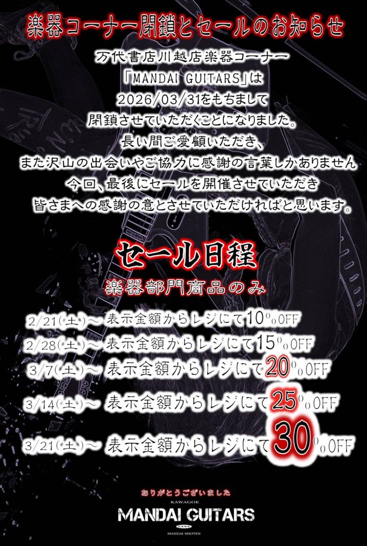 【お知らせ】楽器コーナー閉鎖とセールのお知らせ【楽器】