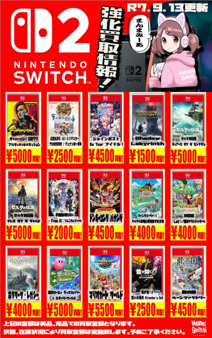 【Switch系ソフト】WEBチラシ更新しました!【WEBチラシ】 ※2025/9/13現在の価格となります。 在庫状況・状態によってお値段が変動いたします。予めご了承ください。 **************** こちら…