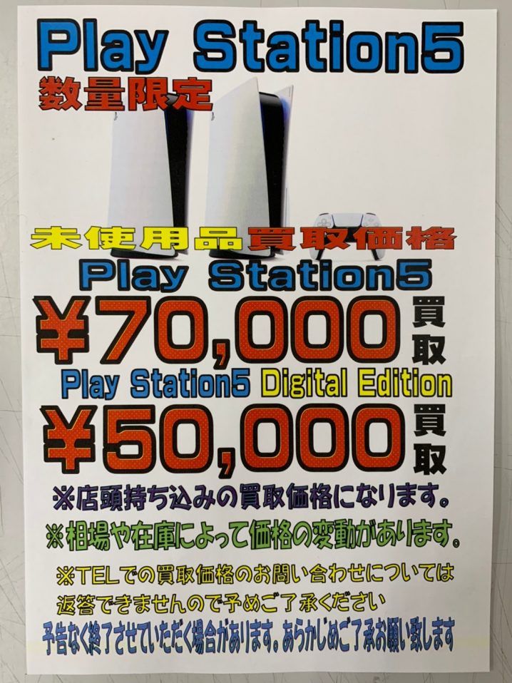 ★買取告知更新★ PS5本体 ※2021/2/22現在の買取価格となります。 在庫状況・状態によってお値段が変動いたします。予めご了承ください。 **************** こちら↓もぜひチェックしてみてくださいね…