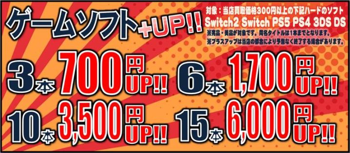 ただいまお得なゲームソフト ゲームハード買取プラスアップキャンペーン実施中です!(´>∀<`)ゝ この機会にお宅に眠っているゲームソフト ゲームハードございましたら是非買取にお持ちください!( * ॑꒳ ॑*…