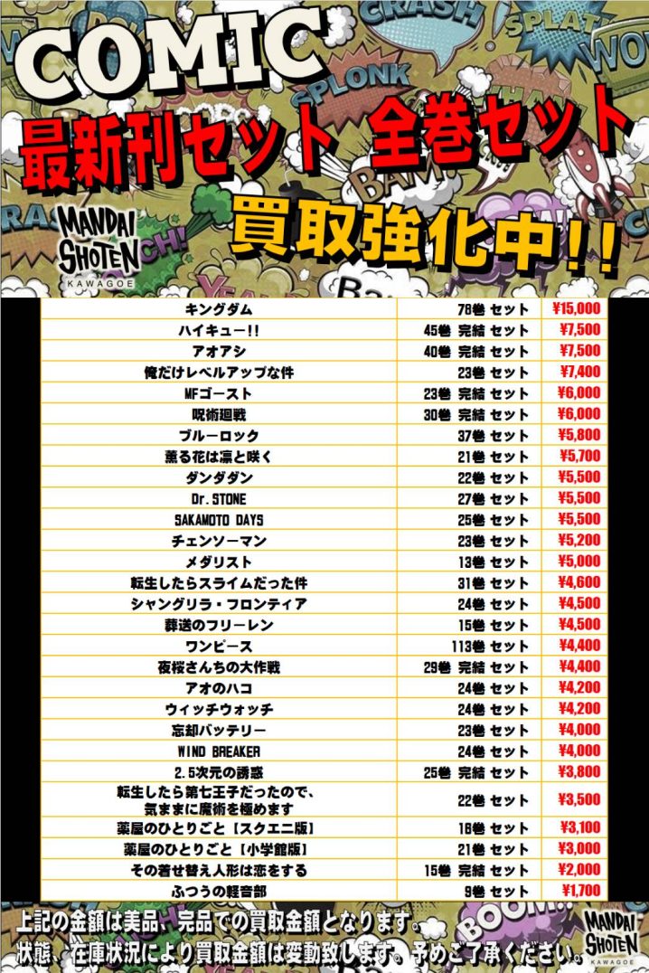 【コミック】WEBチラシ更新しました!【WEBチラシ】 ※2026/1/26現在の価格となります。 在庫状況・状態によってお値段が変動いたします。予めご了承ください。 **************** こちら↓もぜひチェ…