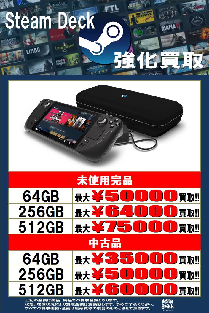 ゲームハード WEBチラシ 2025/12/22 更新 ★宅配買取の詳細はこちら★ 近隣にお住まいで大型商品や大量の品物の査定をご希望でしたら、ご自宅に取りに伺う事も可能です! ★出張買取の詳細はこちら★ 2021年9月より 店舗改装の為、当面の間出張買取の対応を中止させて頂きます。 ご不便をお掛けして申し訳ありませんが、ご理解下さいませ。 **************