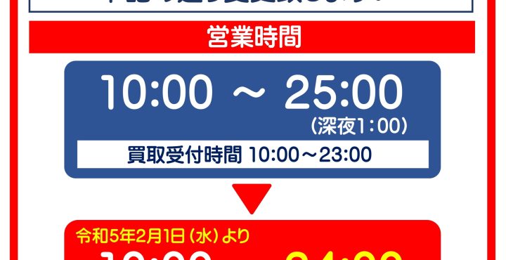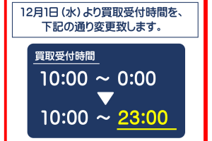 ★買取受付時間変更のお知らせ★ 人手不足のため、11/11(月)より 最終買取受付時間を20時までとさせていただきます。 詳細は画像をご確認ください。 お客様へはご迷惑をおかけいたしますが、 ご理解いただきますようお願い…