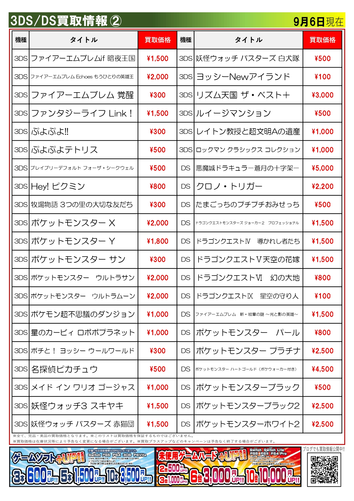2025.09.06 買取告知 takalab_1 【ゲーム】WEBチラシ更新しました!★3DS 他レトロ系★ WEBチラシ更新しました!★3DS 他レトロ系★ ※2025/9/6現在の価格となります。 在庫状況・状態によってお値段が変動いたします。予めご了承ください。 *************** こちら↓もぜひチェックしてみてくださいね♪(*´▽`*) ・最新のイベント情報はこちら ・最新の買取情報はこちら コメントを残す コメントをキャンセルメールアドレスが公開されることはありません。 ※ が付いている欄は必須項目ですコメント ※ 名前 ※ メール ※ サイト 新しいコメントをメールで通知 新しい投稿をメールで受け取る Δ
