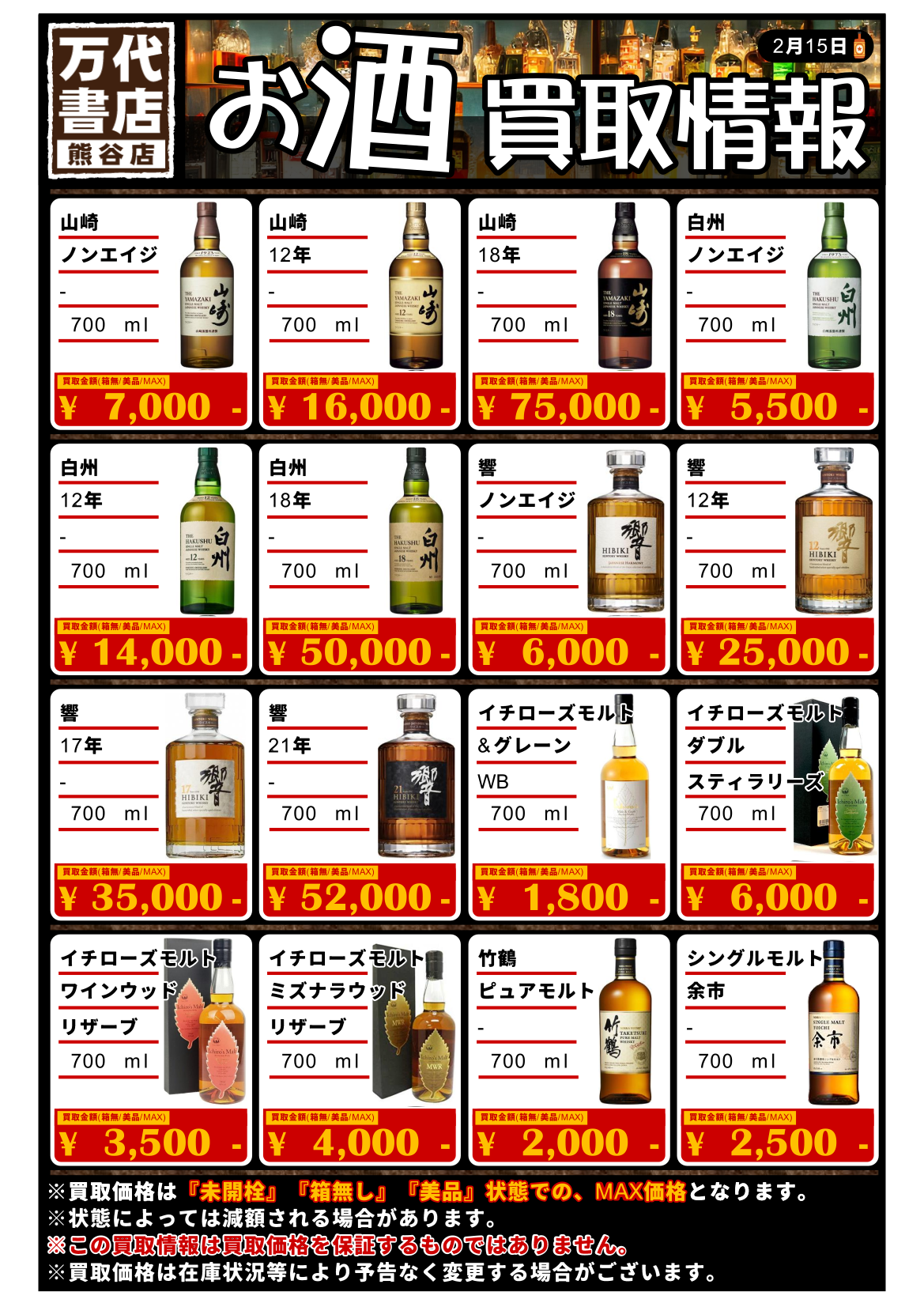 2026.02.16 買取告知 takalab_6 お酒 買取情報更新しました! 買取情報🍶 ※2026/2/16現在の価格となります。 在庫状況・状態によってお値段が変動いたします。予めご了承ください。 *************** こちら↓もぜひチェックしてみてくださいね♪(*´▽`*) ・最新のイベント情報はこちら ・最新の買取情報はこちら コメントを残す コメントをキャンセルメールアドレスが公開されることはありません。 ※ が付いている欄は必須項目ですコメント ※ 名前 ※ メール ※ サイト 新しいコメントをメールで通知 新しい投稿をメールで受け取る Δ