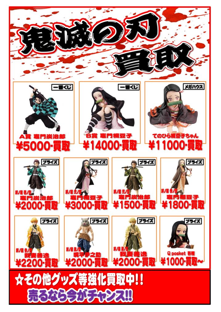 おもちゃコーナーより 鬼滅の刃の買取告知出来ました°˖✧◝(⁰▿⁰)◜✧˖° ※10/6現在の買取価格となっております。 皆様からの買取じゃんじゃんお待ちしております((((oノ´3`)ノ &…