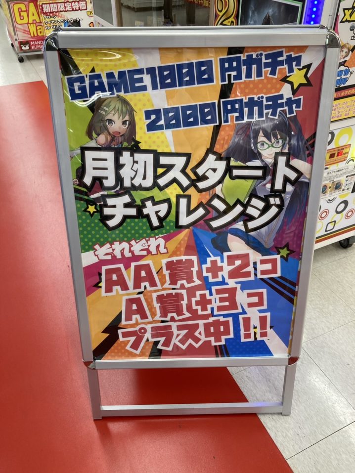 2/5時点で残っている景品状況です💃🍫 月初スタートチャレンジ🍓❣️ 1000円ガチャ、2000円ガチャのAA賞が2つ、A賞が3つずつプラスされ…