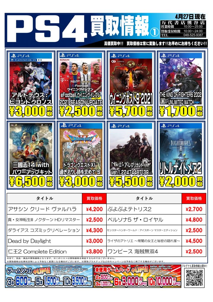 ★買取情報★ ゲーム買取告知の更新です! ※2021/4/28現在の買取価格となります。 在庫状況・状態によってお値段が変動いたします。予めご了承ください。 *************** こちら↓もぜひチェックしてみて…