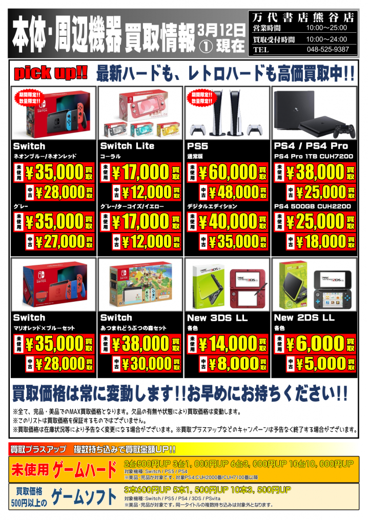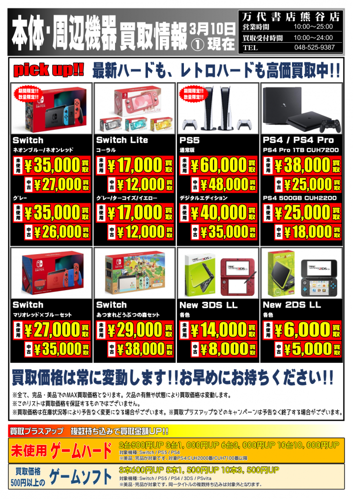 ⭐WEBチラシ更新しました!!⭐ ※2021/3/10 現在の買取価格となります。 在庫状況・状態によってお値段が変動いたします。予めご了承ください。 *************** こちら↓…